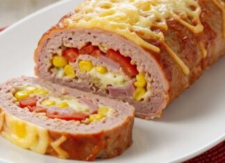 Rocambole de Carne Moída Recheado com Presunto e Queijo