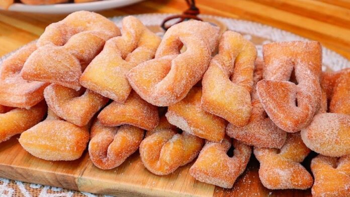 3️⃣ Abra a massa com um rolo, corte em tiras e faça um corte no meio de cada uma para torcer e dar o formato tradicional.