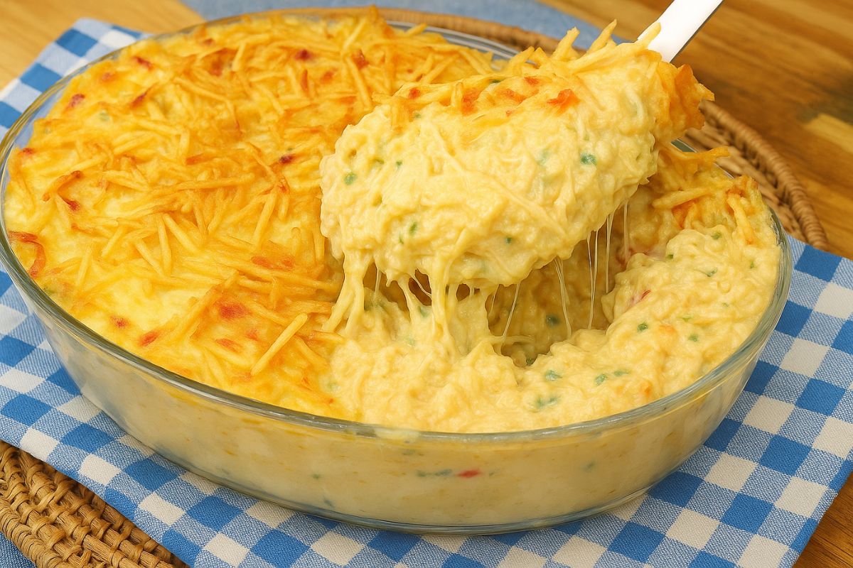 Outra coisa: não economize no requeijão — é ele que dá a cremosidade e o sabor aconchegante. Quando for montar, finalize com batata palha só na hora de servir, para ela não murchar com o vapor. Assim ela fica crocante de verdade.